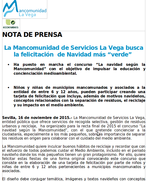Ha puesto en marcha el concurso La navidad según la Mancomunidad con el objetivo de impulsar la educación y concienciación medioambiental.
